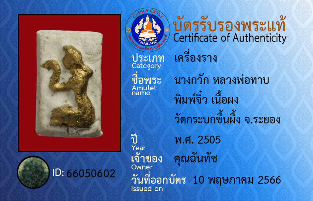 Amulet name : name : nang kwak luangportap pimjiw neuapong wat gra bok keun peung Rayong