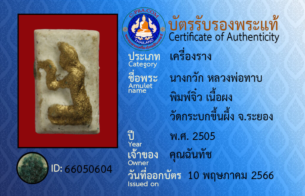 ชื่อพระ :นางกวัก หลวงพ่อทาบ พิมพ์จิ๋ว เนื้อผง วัดกระบกขึ้นผึ้ง จ.ระยอง