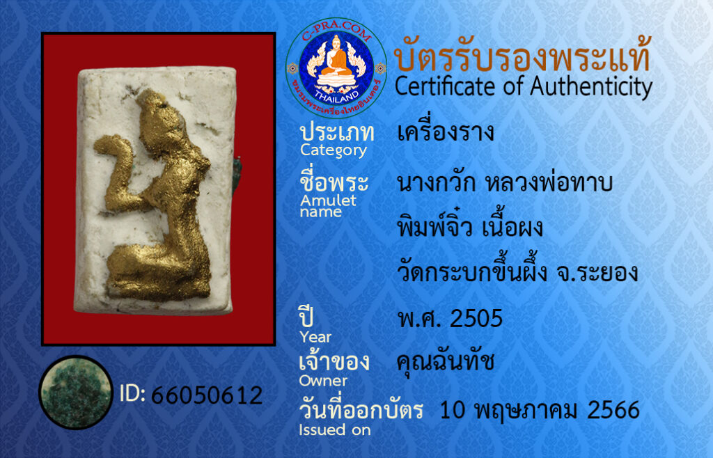 Amulet name : name : nang kwak luangportap pimjiw neuapong wat gra bok keun peung Rayong
