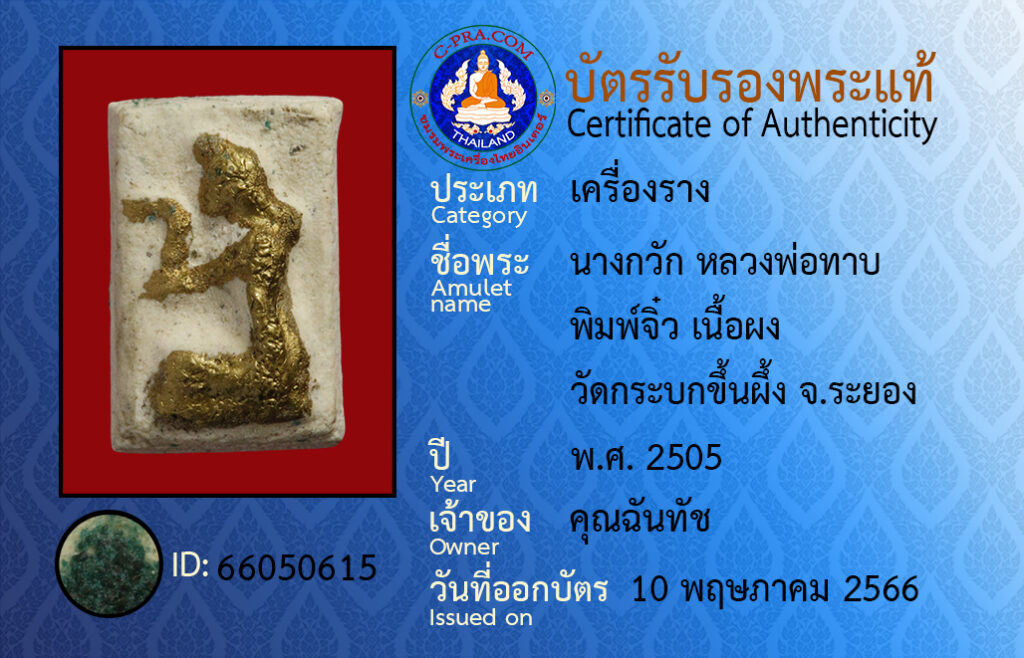 Amulet name : name : nang kwak luangportap pimjiw neuapong wat gra bok keun peung Rayong