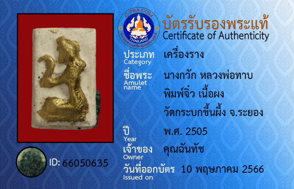 ชื่อพระ :นางกวัก หลวงพ่อทาบ พิมพ์จิ๋ว เนื้อผง วัดกระบกขึ้นผึ้ง จ.ระยอง