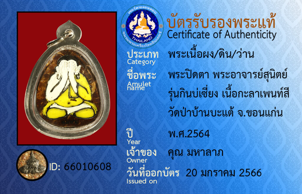 ชื่อพระ : พระปิดตา พระอาจารย์สุนิตย์ รุ่นกินบ่เซียง เนื้อกะลาเพ้นท์สี วัดป่าบ้านตะเเต้ จ.ขอนเเก่น