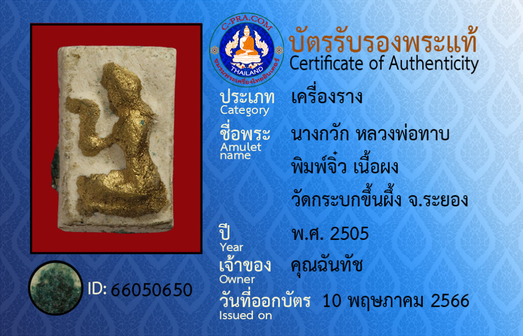 ชื่อพระ :นางกวัก หลวงพ่อทาบ พิมพ์จิ๋ว เนื้อผง วัดกระบกขึ้นผึ้ง จ.ระยอง