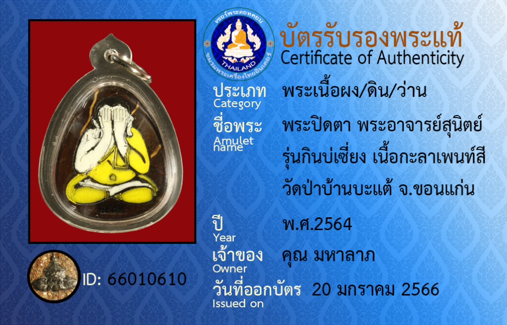 ชื่อพระ : พระปิดตา พระอาจารย์สุนิตย์ รุ่นกินบ่เซียง เนื้อกะลาเพ้นท์สี วัดป่าบ้านตะเเต้ จ.ขอนเเก่น