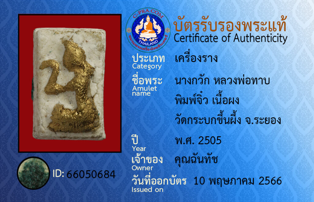 Amulet name : name : nang kwak luangportap pimjiw neuapong wat gra bok keun peung Rayong