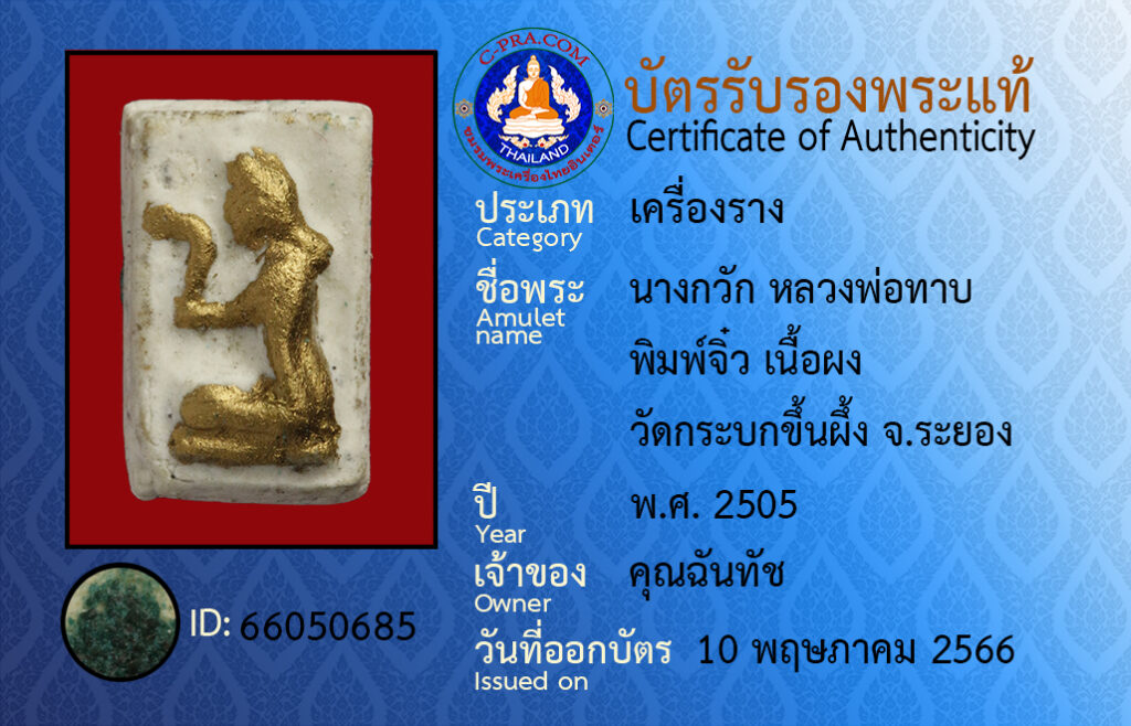 ชื่อพระ :นางกวัก หลวงพ่อทาบ พิมพ์จิ๋ว เนื้อผง วัดกระบกขึ้นผึ้ง จ.ระยอง