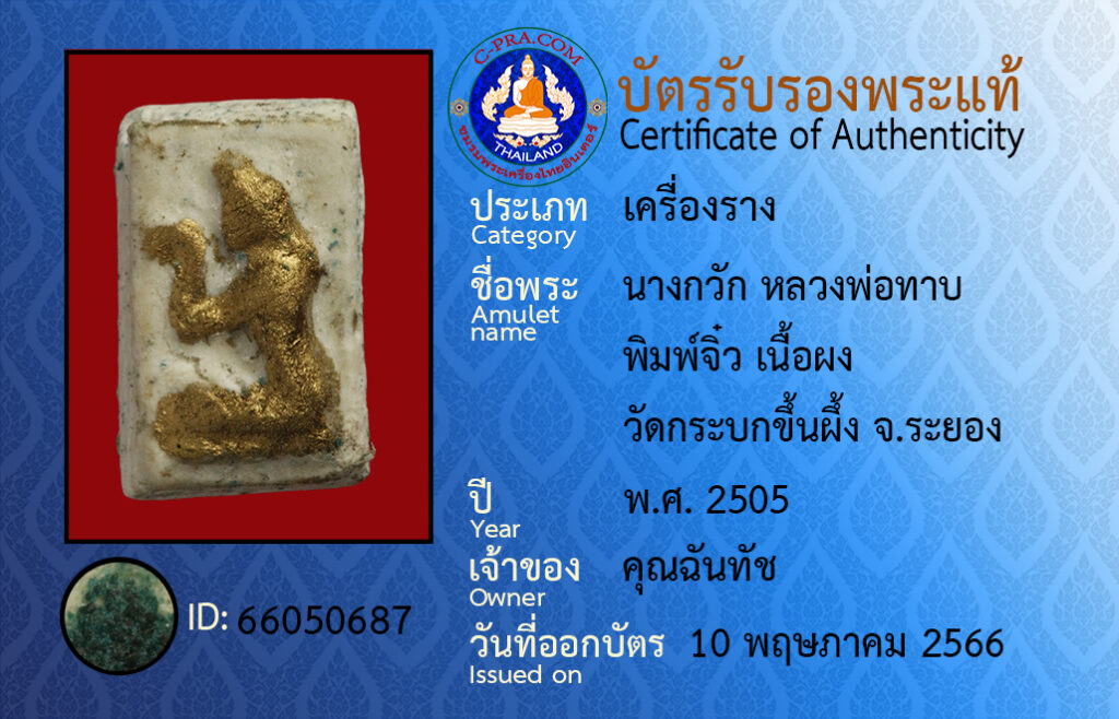 ชื่อพระ :นางกวัก หลวงพ่อทาบ พิมพ์จิ๋ว เนื้อผง วัดกระบกขึ้นผึ้ง จ.ระยอง