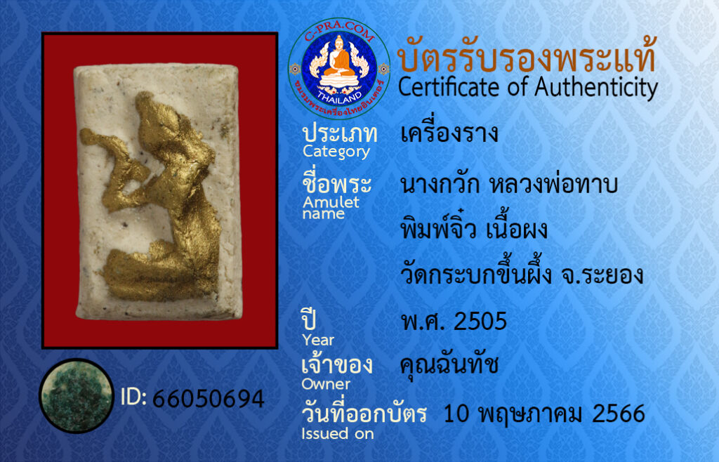 Amulet name : name : nang kwak luangportap pimjiw neuapong wat gra bok keun peung Rayong