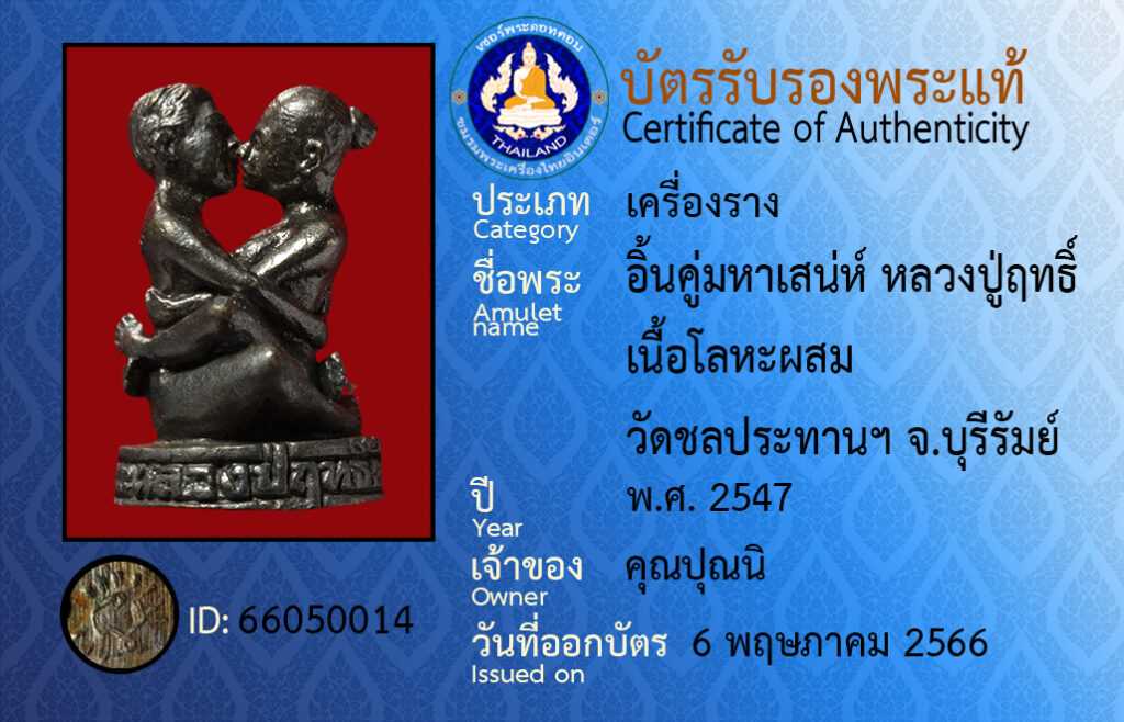 ชื่อพระ :อิ้นคู่มหาเสน่ห์ หลวงปู่ฤทธิ์ เนื้อโลหะผสม วัดชลประทานฯ จ.บุรีรัมย์