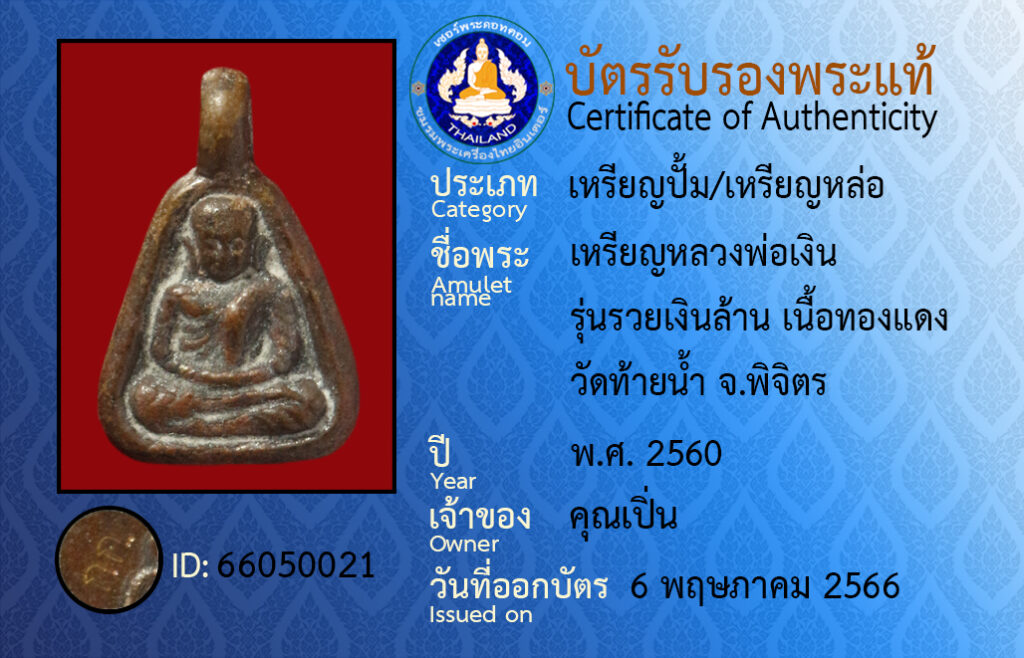 Amulet name : name :rian luang por ngern run ruay ngenlan neua tong dang wattai nam Pijit