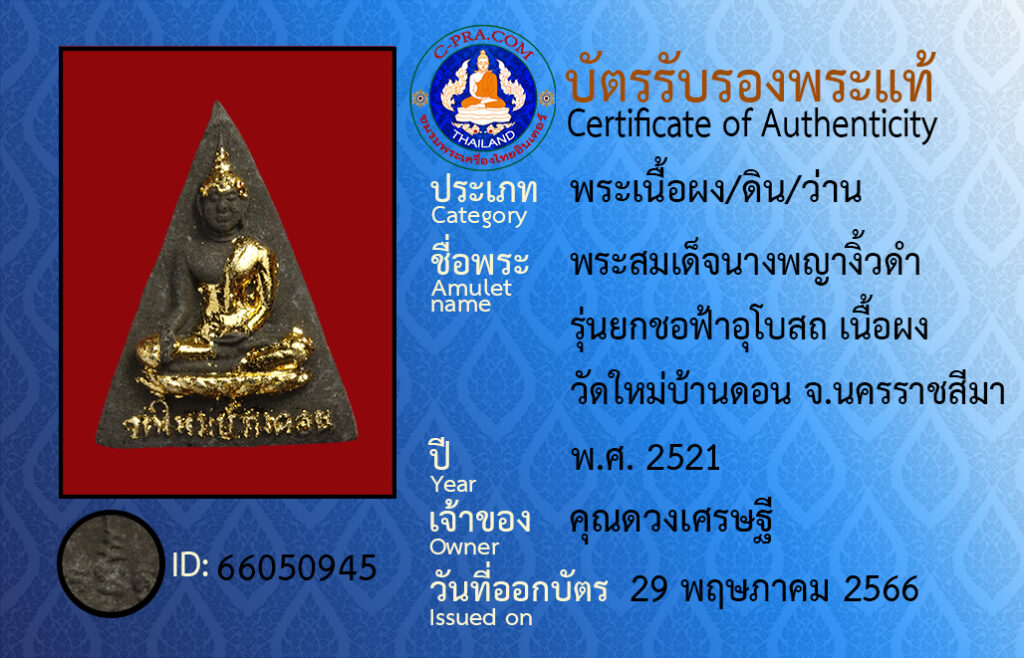 ชื่อพระ :พระสมเด็จนางพญางิ้วดำ รุ่นยกชอฟ้าอุโบสถ เนื้อผง วัดใหม่บ้านดอน จ.นครราชสีมา