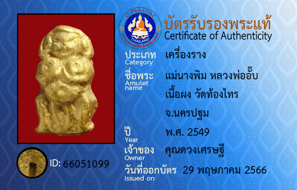 ชื่อพระ :แม่นางพิม หลวงพ่ออั๊บ เนื้อผง วัดท้องไทร จ.นครปฐม