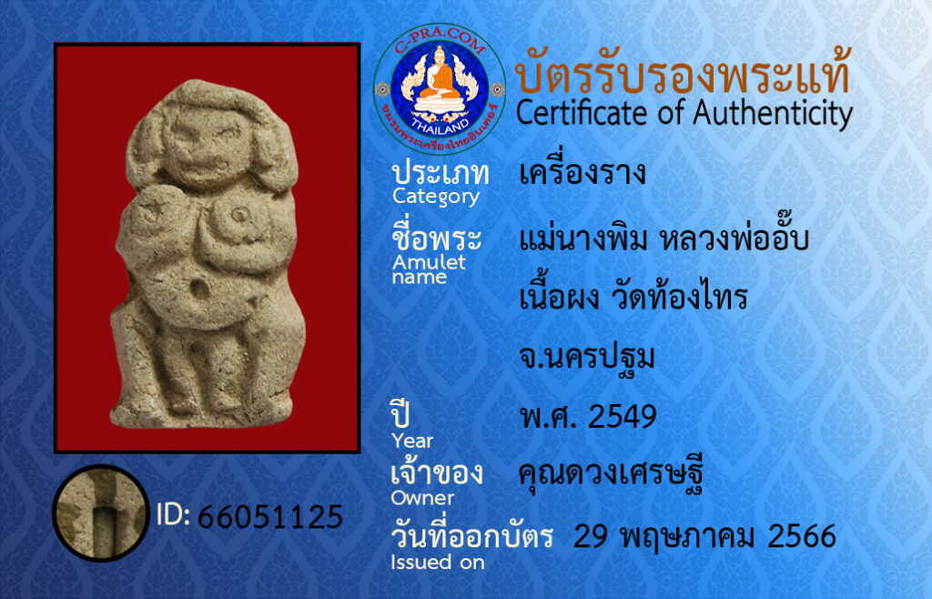 ชื่อพระ :แม่นางพิม หลวงพ่ออั๊บ เนื้อผง วัดท้องไทร จ.นครปฐม