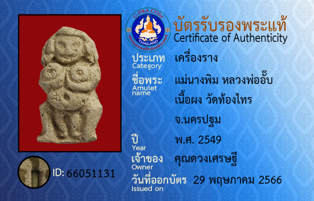 ชื่อพระ :แม่นางพิม หลวงพ่ออั๊บ เนื้อผง วัดท้องไทร จ.นครปฐม