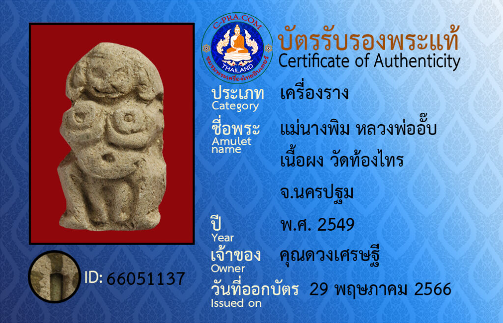 ชื่อพระ :แม่นางพิม หลวงพ่ออั๊บ เนื้อผง วัดท้องไทร จ.นครปฐม
