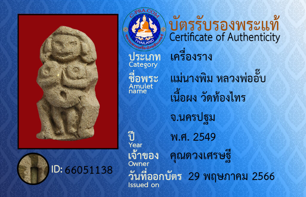 ชื่อพระ :แม่นางพิม หลวงพ่ออั๊บ เนื้อผง วัดท้องไทร จ.นครปฐม