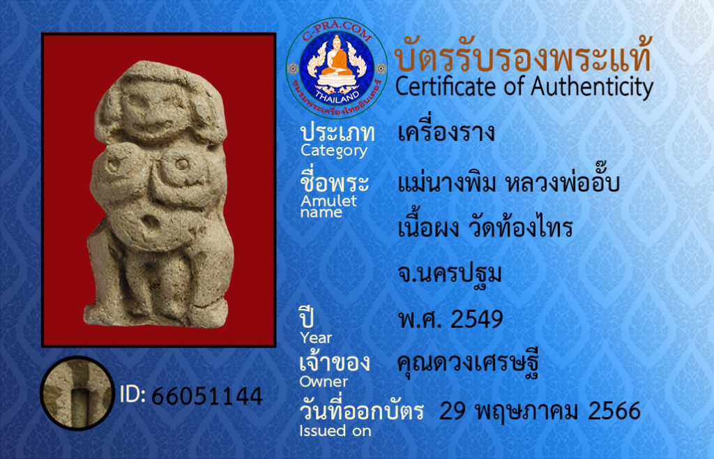 ชื่อพระ :แม่นางพิม หลวงพ่ออั๊บ เนื้อผง วัดท้องไทร จ.นครปฐม
