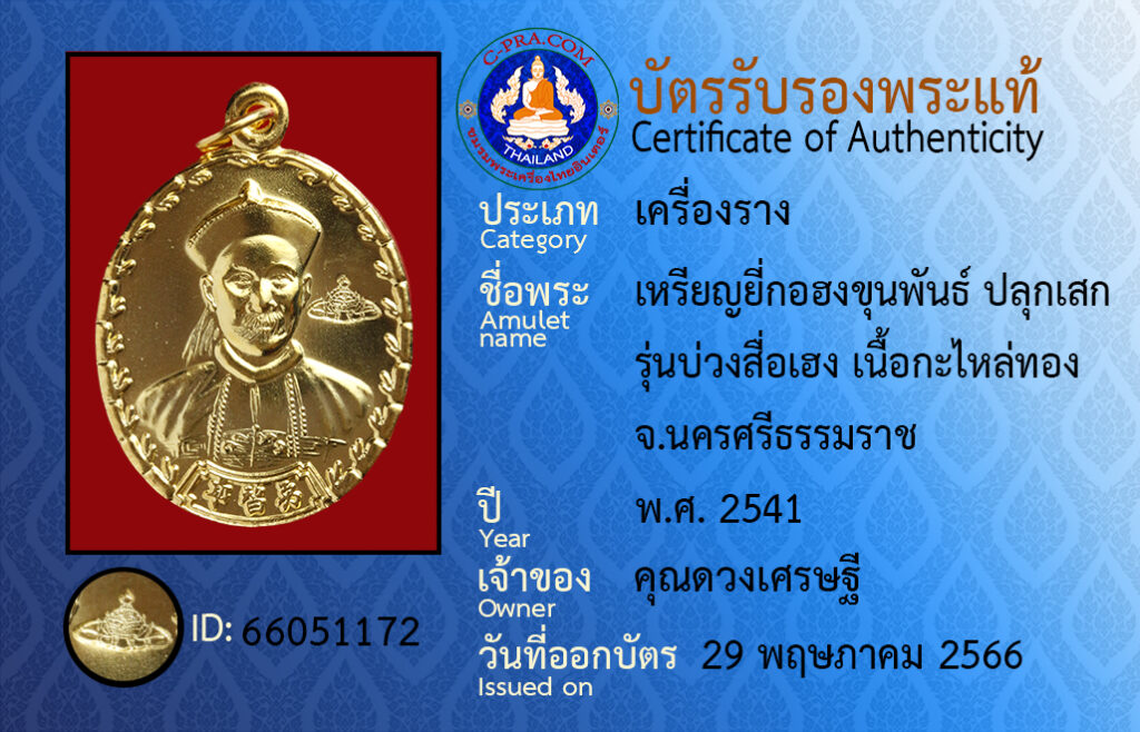 Amulet :Riian yee gor hong kun pan · bpluk sek · run buang seu heng · nua ga lai tong Nakhon Si Thammarat.