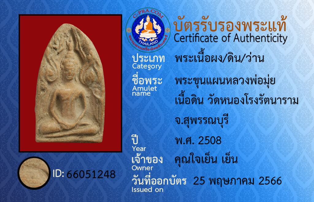 Amulet name : pra kun paen luang por mui neua din wat nong-rong rat na ram su-pan bu-ree
