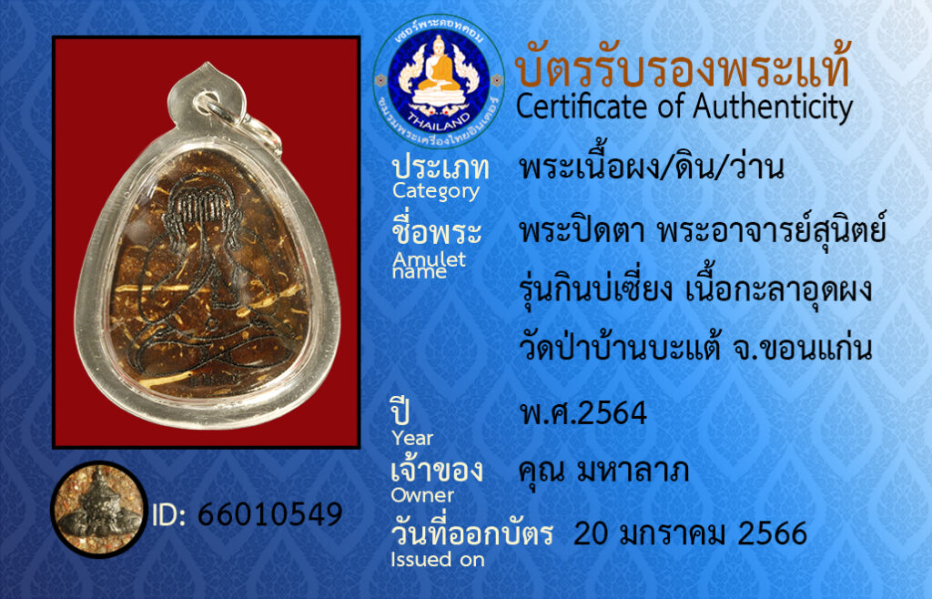 Amulet name : pra pidta pra a jan su nit wat pa ba tae