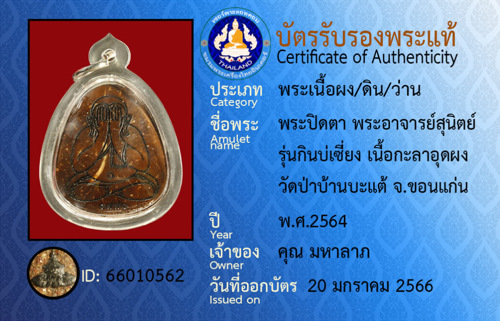 Amulet name : pra pidta pra a jan su nit wat pa ba tae