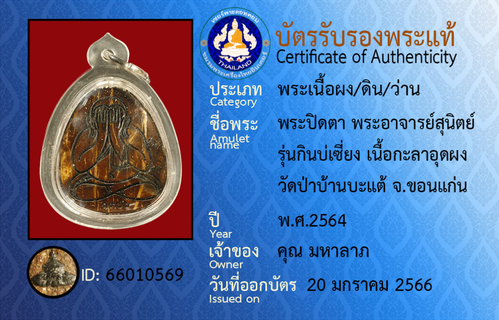 Amulet name : pra pidta pra a jan su nit wat pa ba tae