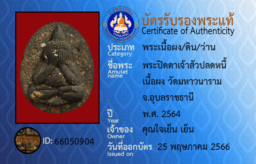 ชื่อพระ :พระปิดตาเจ้าสัวปลดหนี้ เนื้อผง วัดมหาวนาราม จ.อุบลราชธานี