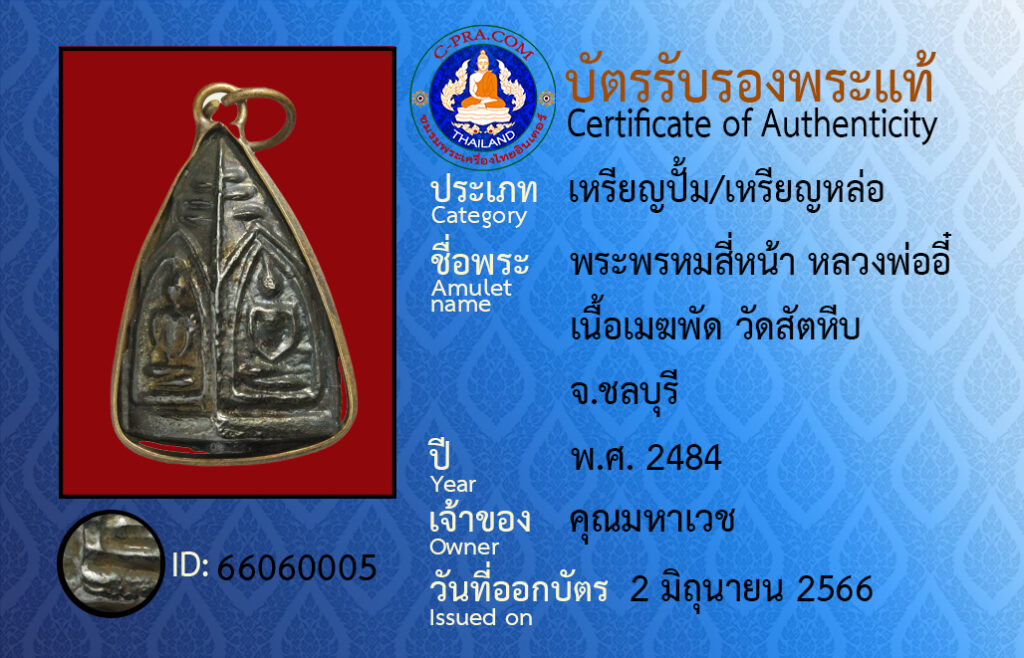 ชื่อพระ :พระพรหมสี่หน้า หลวงพ่ออี๋ เนื้อเมฆพัด วัดสัตหีบ
