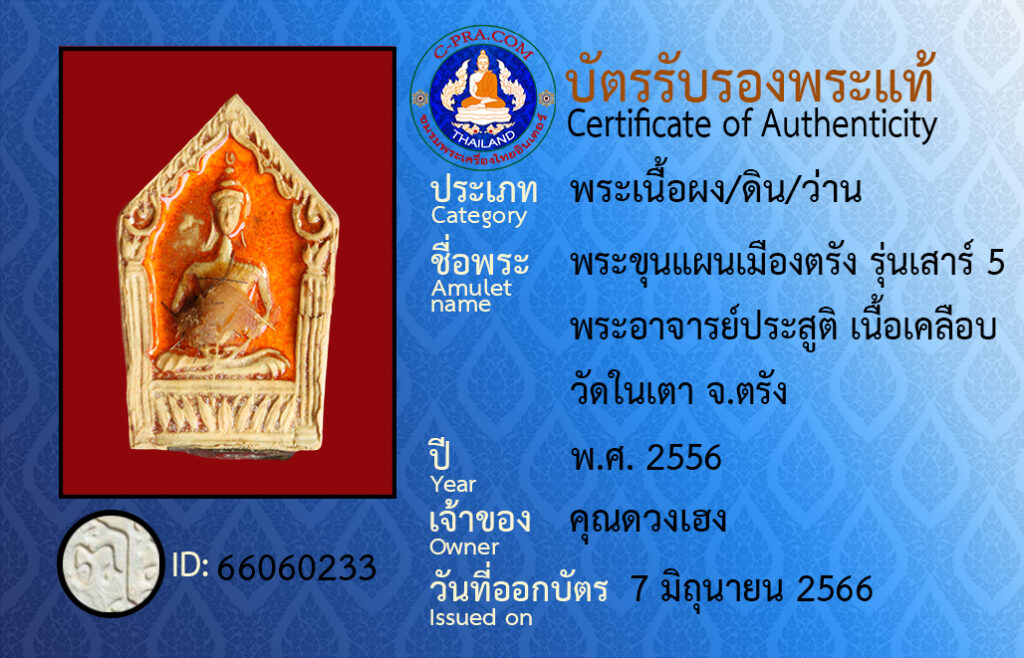 ชื่อพระ :พระขุนแผนเมืองตรัง รุ่นเสาร์5 พระอาจารย์ประสูติ เนื้อเคลือบ วัดในเตา จ.ตรัง