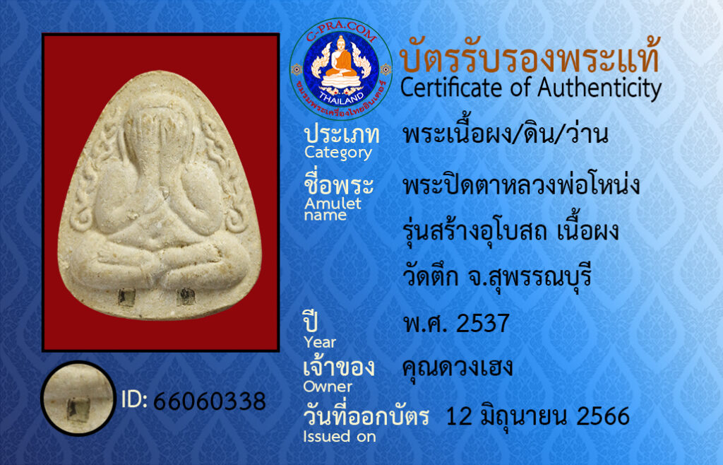 Amulet name : pra pit ta luang por nong run sang u-boh-sot neua pong wat teuk su-pan bu-ree