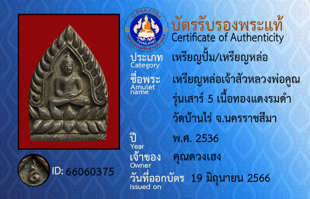 Amulet name :rian lor jao sua luang por koon runsao5 neua tong daeng rom dam watbanrai na kon rat see ma