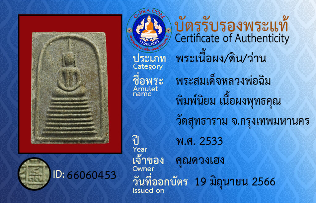 Amulet name : pra som det luang por chim pim ni-yom neua pong put-ta-kun wat sut-ta-ram Bangkok