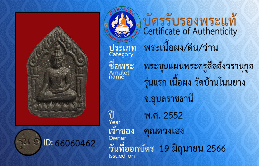 Amulet name : pra kun paen pra kroo see lasang wa ra gun run raek neua pong wat ban non yang u-bon rat-cha-ta-nee