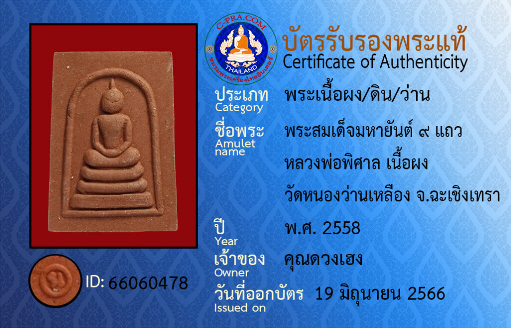 Amulet name : pra som det ma-ha yan ๙ luang por san neua pong wat nong-wan-leuang cha-cherng-sao
