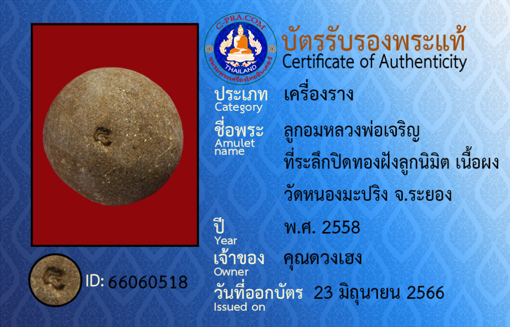 ชื่อพร :ลูกอมหลวงพ่อเจริญ ที่ระลึกปิดทองฝังลูกนิมิต เนื้อผง วัดหนองมะปริง จ.ระยอง
