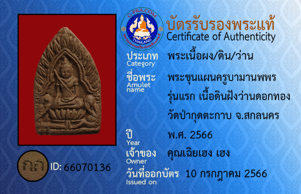 ชื่อพระ :พระขุนแผนครูบามานพพร รุ่นแรก เนื้อดินฝังว่านดอกทอง วัดป่ากุดตะกาบ จ.สกลนคร