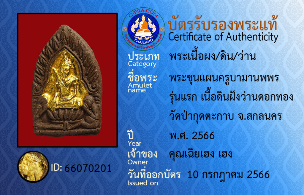 Amulet : pra kun paen kroo baa maa-nop pon · run raek · neuua din fang wan dok tong · wat bpa gut-dta-gap Sakon Nakhon
