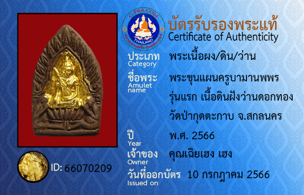 Amulet : pra kun paen kroo baa maa-nop pon · run raek · neuua din fang wan dok tong · wat bpa gut-dta-gap Sakon Nakhon