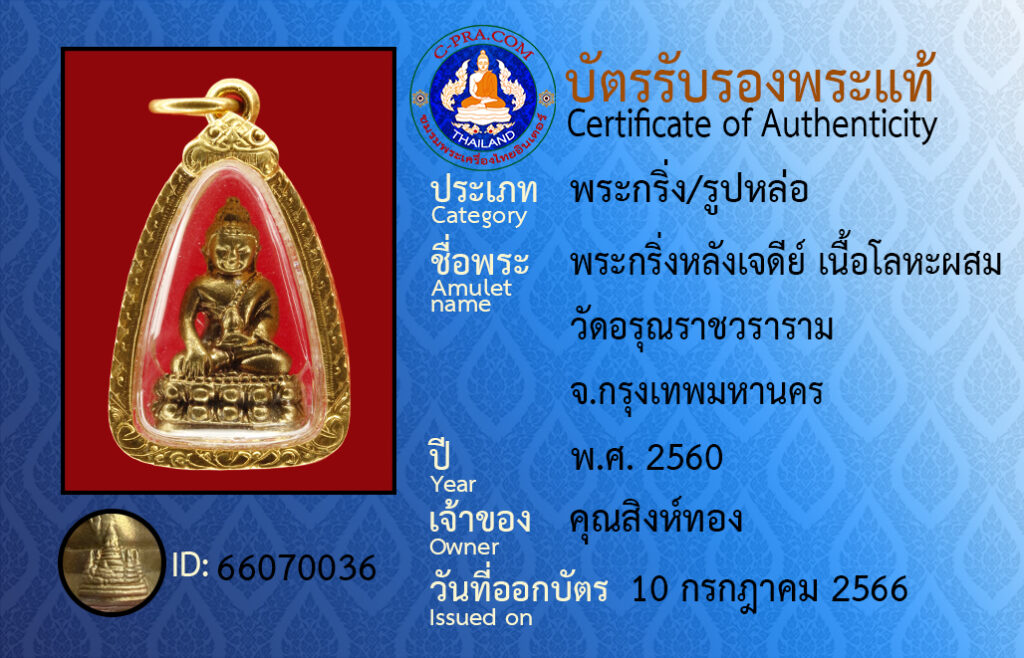 Amulet : pra gring lang jay-dee · neuua loh-ha pa-som Wat Arun Bangkok