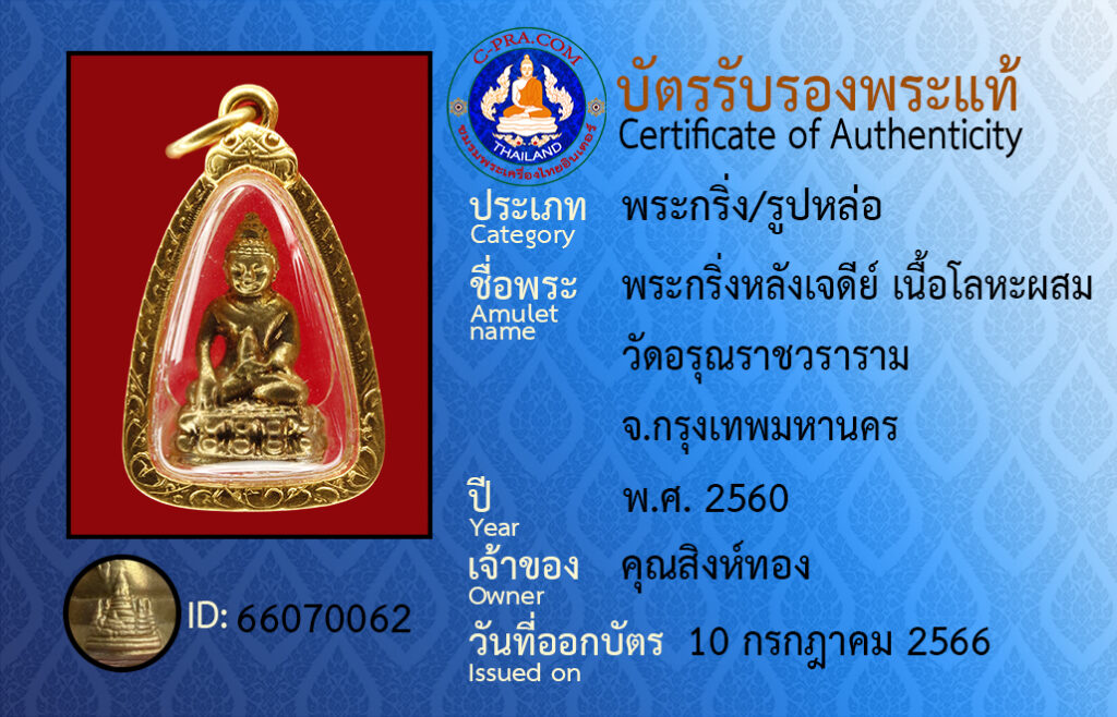 ชื่อพระ :พระกริ่งหลังเจดีย์ เนื้อโลหะผสม วัดอรุณราชวราราม จ.กรุงเทพมหานคร