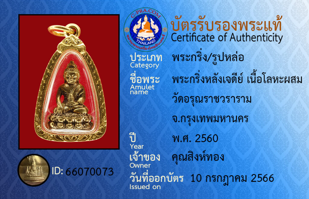 ชื่อพระ :พระกริ่งหลังเจดีย์ เนื้อโลหะผสม วัดอรุณราชวราราม จ.กรุงเทพมหานคร