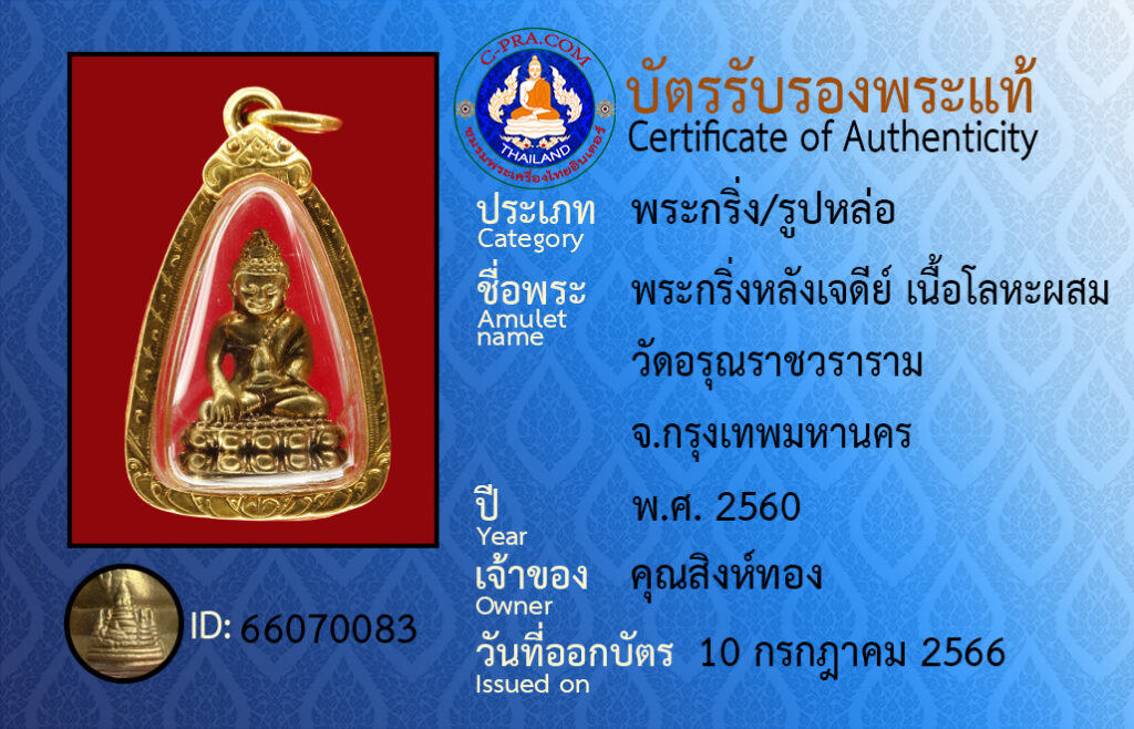 ชื่อพระ :พระกริ่งหลังเจดีย์ เนื้อโลหะผสม วัดอรุณราชวราราม จ.กรุงเทพมหานคร