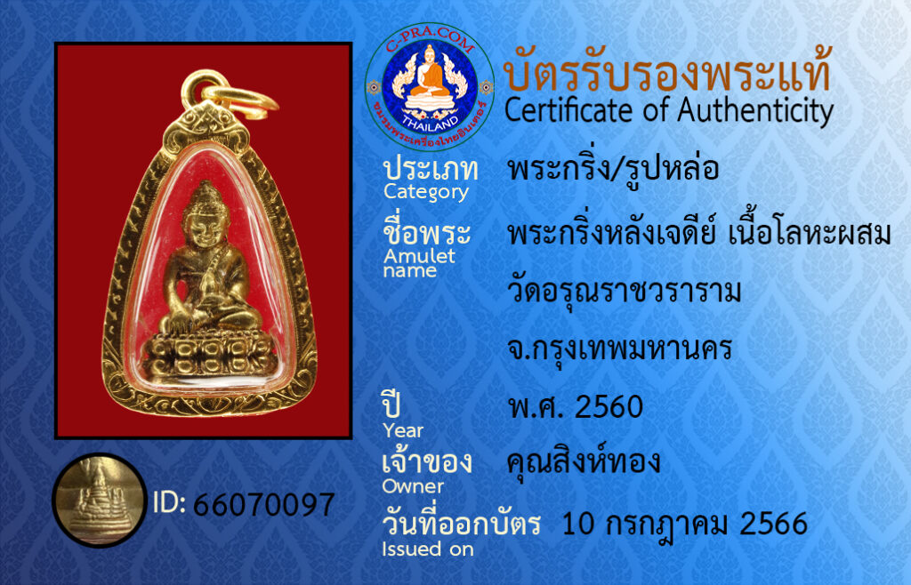 ชื่อพระ :พระกริ่งหลังเจดีย์ เนื้อโลหะผสม วัดอรุณราชวราราม จ.กรุงเทพมหานคร