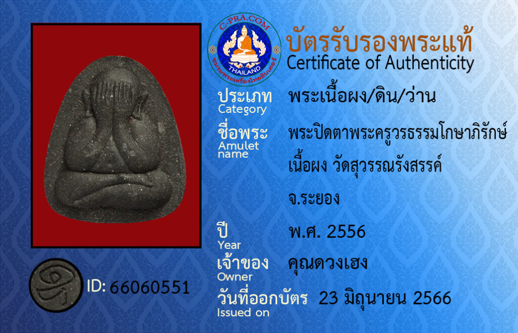 ชื่อพร :พระปิดตาพระครูวรธรรมโกษาภิรักษ์ เนื้อผง วัดสุวรรณรังสรรค์ จ.ระยอง