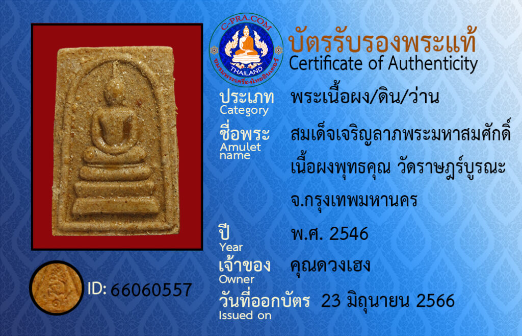 ชื่อพร :สมเด็จเจริญลาภพระมหาสมศักดิ์ เนื้อผงพุทธคุณ วัดราษฎร์บูรณะ จ.กรุงเทพมหานคร