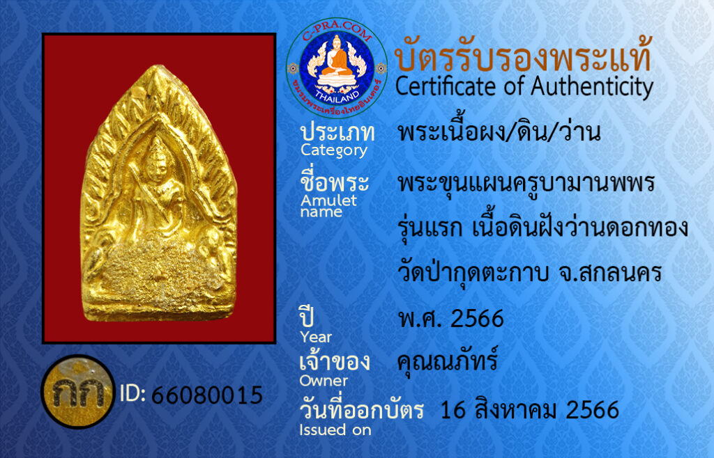 ชื่อพระ :พระขุนแผนครูบามานพพร รุ่นแรก เนื้อดินฝังว่านดอกทอง วัดป่ากุดตะกาบ จ.สกลนคร