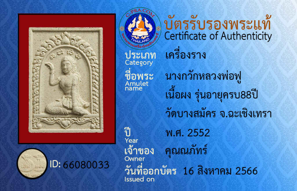 ชื่อพระ :นางกวักหลวงพ่อฟู เนื้อผง รุ่นอายุครบ88ปี วัดบางสมัคร จ.ฉะเชิงเทรา
