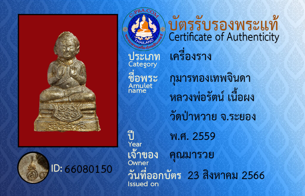 ชื่อพระ :กุมารทองเทพจินดา หลวงพ่อรัตน์ เนื้อผง วัดป่าหวาย จ.ระยอง