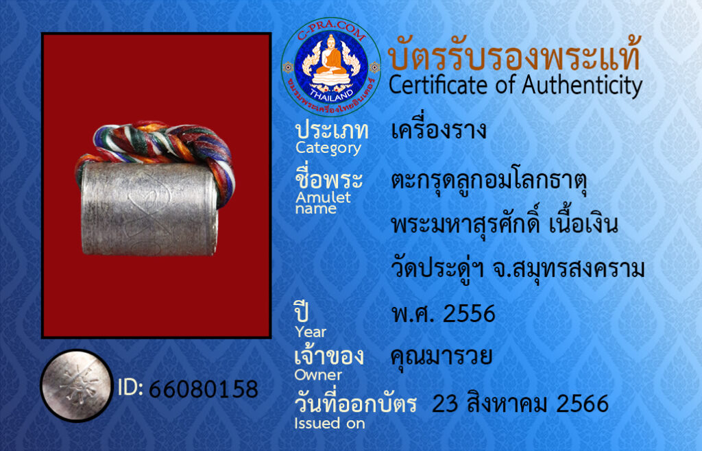 ชื่อพระ : ตะกรุดลูกอมโลกธาตุ พระมหาสุรศักดิ์ เนื้อเงิน วัดประดู่ฯ จ.สมุทรสงคราม
