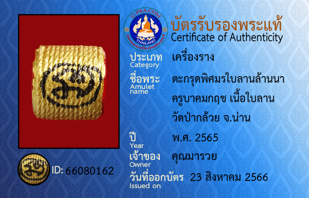 Amulet name : ta-grut pit sa mon bai lan lan na kroo ba kom grit neua bai lan wat prak-guay nan Thailand